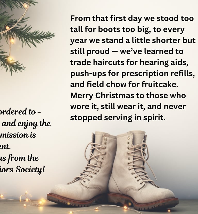 Hand-delivered, custom Christmas cards that brighten the holidays for those who served, sharing warmth the Wisecrack Warrior way.
